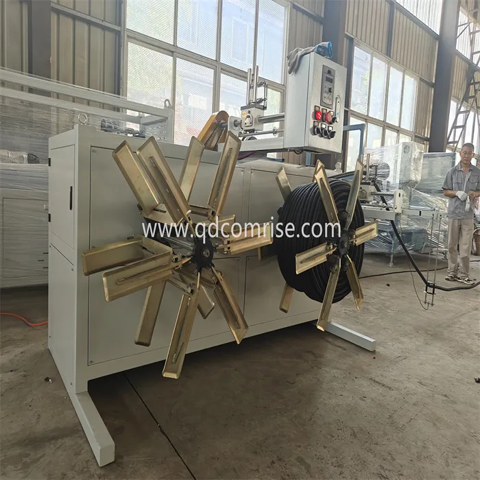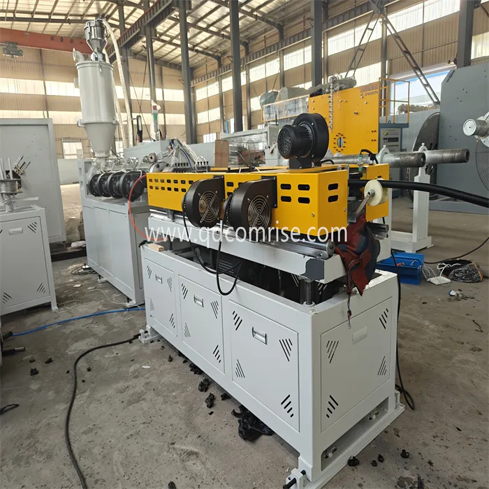 Pipa mlebu ing Corrugator, ing endi dibentuk menyang profil corrugated nggunakake blok cetakan lan tekanan vakum.