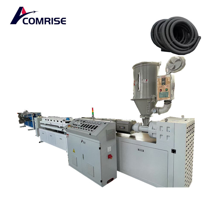 Peralatan iki kasusun saka ekstrum plastik, tembok tunggal tembok ekstrus, piranti sing nglereni, lan mesin tumpukan sing apik banget, lan seragam sing beda-beda corrugated Struktur corrugated njamin kaku lan keluwesan pipa corrugated siji-tembok.