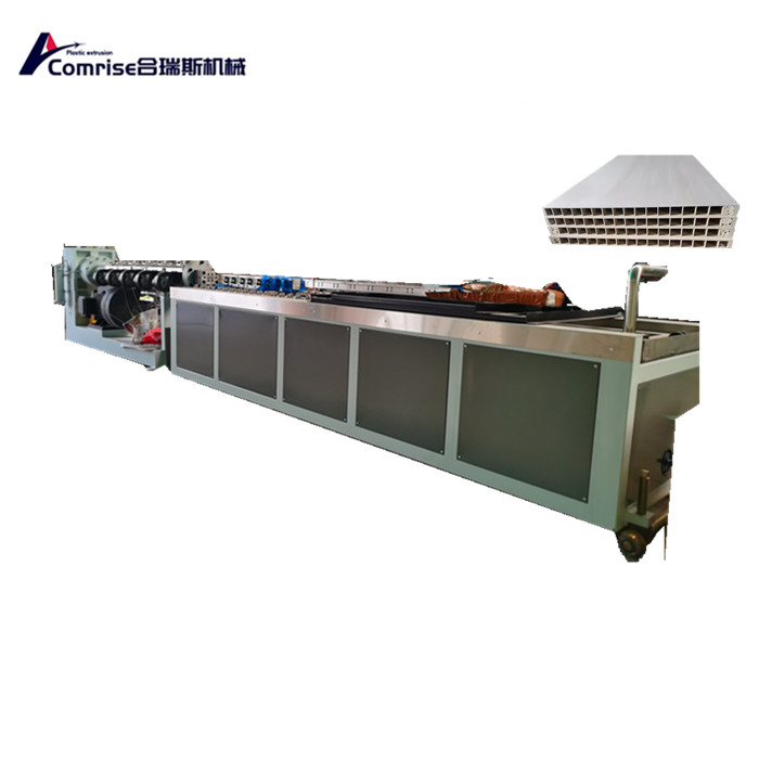 Garis produksi pvc utamane digunakake kanggo ngasilake profil plastik pvc kanthi bentuk lan dhuwur cross-section. Lumahing profil / panel PVC bisa diobati kanthi nyithak lan nglakokake nganggo lenga sing nggilap, nyithak transfer panas, utawa laminasi, sing bisa digunakake kanggo pawon, sekedhik, balconioms, lan liya-liyane.