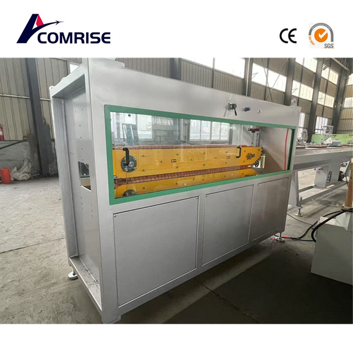Pelet plastik → freading feed → Ekstruder ekstruder single → Mesin Mesin Line → Tank Vacuum → Mesin Traction Tangki → Tukang mesin tumpukan → mesin tebing → Mesin Ekstra